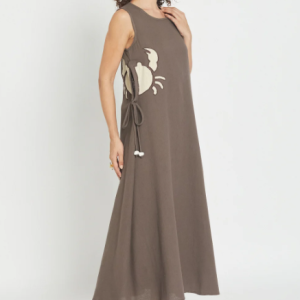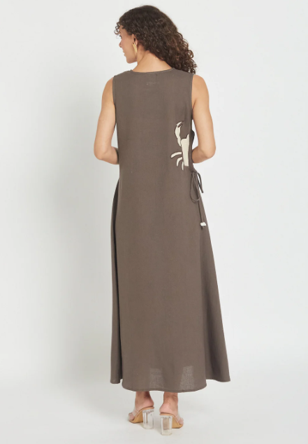 Embrace effortless style with the Solara Mocha Dress — a straight-cut essential, Made from soft cotton that follows your movements. With a charming crab embroidery detail on the side, This dress brings a relaxed, beachy feel to your everyday wardrobe. Perfect for those who love a touch of personality in their basic pieces.