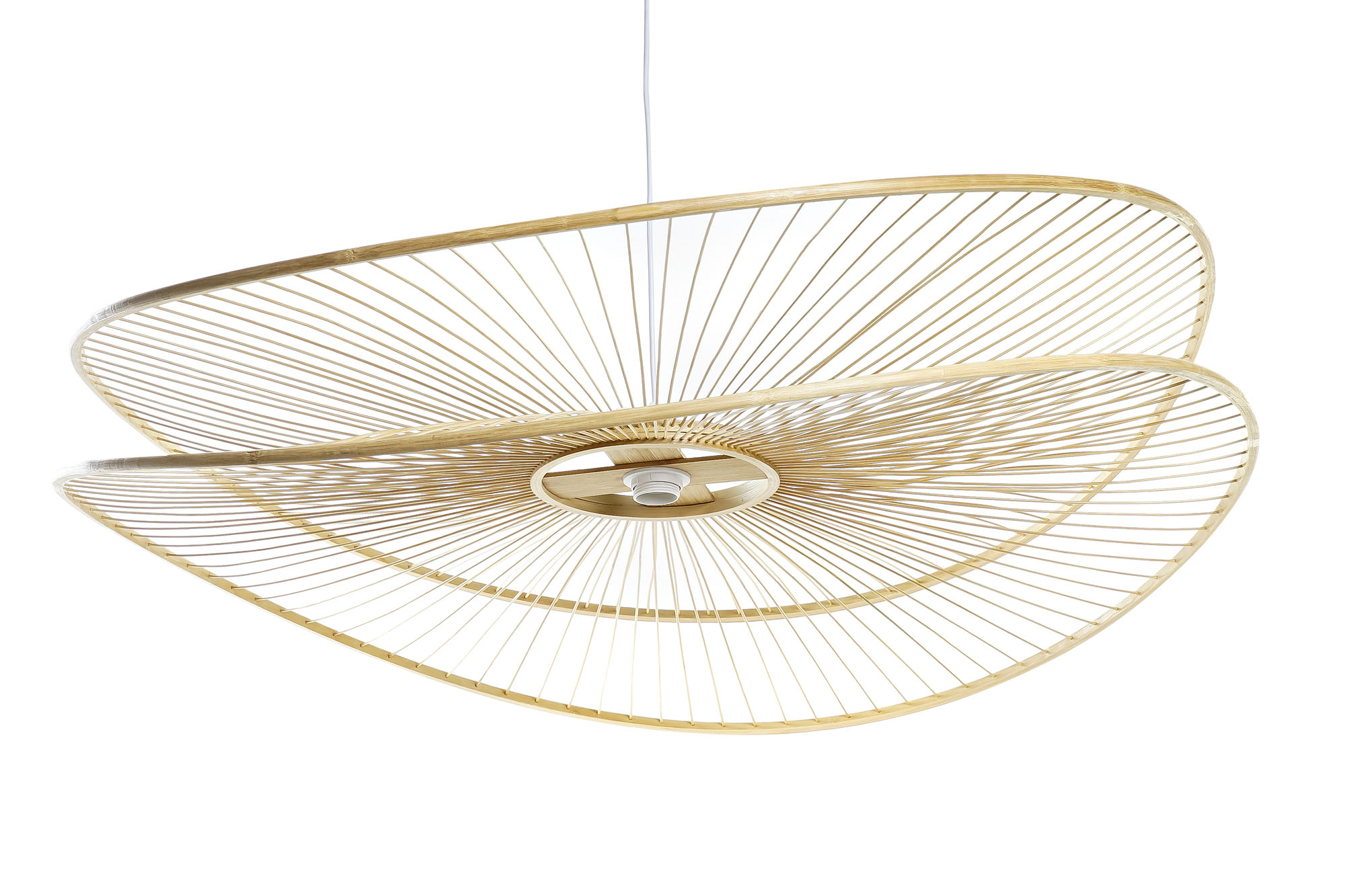 Candeeiro suspenso em bambu de cor natural com casquilho E27 Cor: Bambu