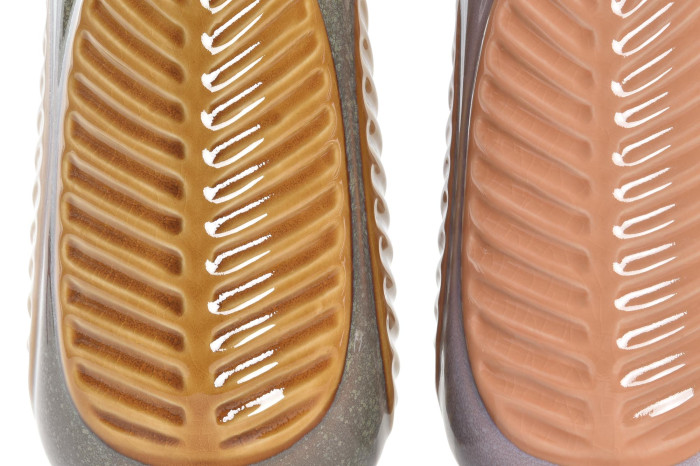 Par de castiçais em cerâmica com acabamento brilhante e relevo de folha em tom terracota. Com design moderno e cores suaves, são ideais para adicionar um toque decorativo e acolhedor a qualquer ambiente.