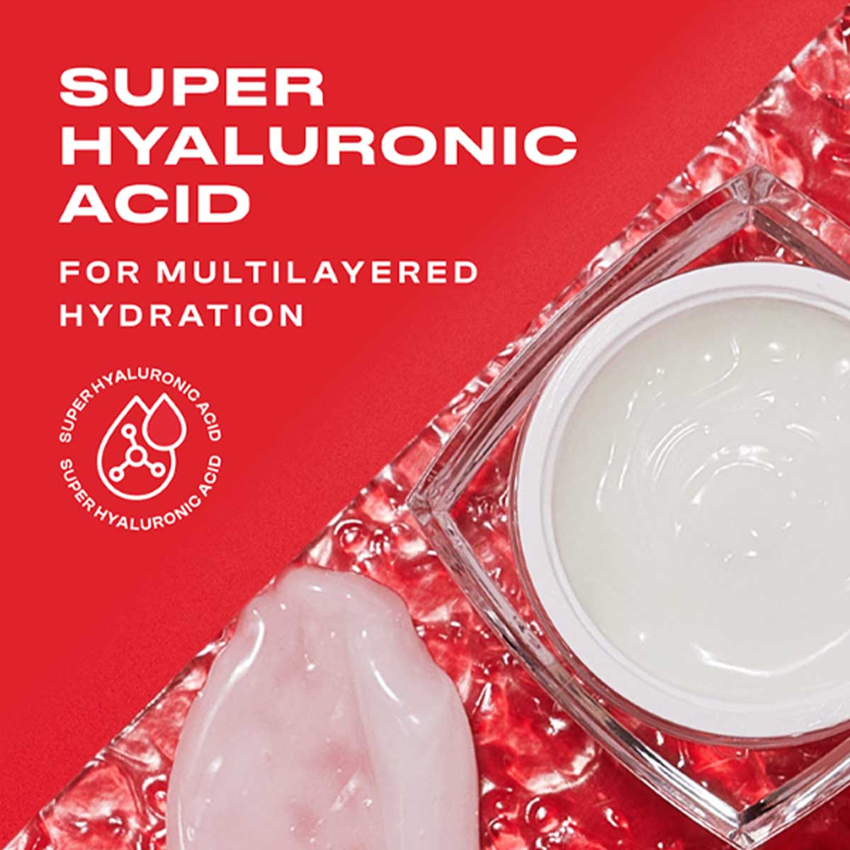 Esta fórmula arejada, mas intensamente nutritiva, enriquecida com o exclusivo Super Ácido Hialurónico, proporciona uma hidratação profunda e uma pele mais suave. Concebido para uso diurno e noturno, revigora a sua pele, suaviza as linhas finas e as rugas e deixa o seu rosto irresistivelmente suave. Suave o suficiente para peles sensíveis, é o seu escudo definitivo contra a secura e a opacidade