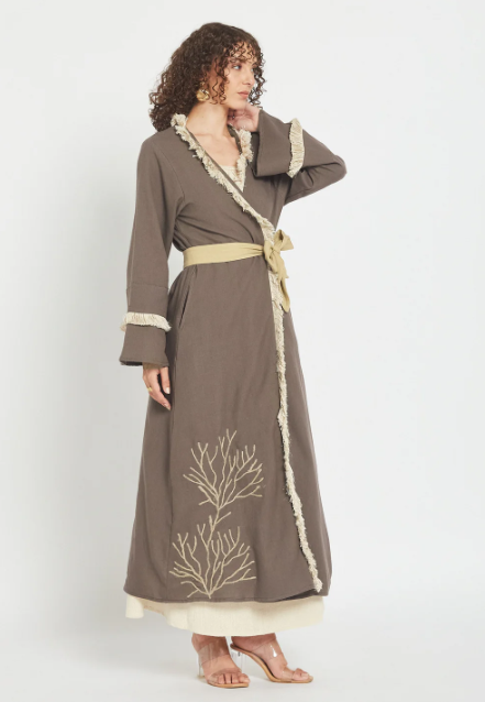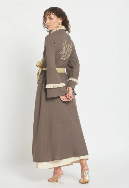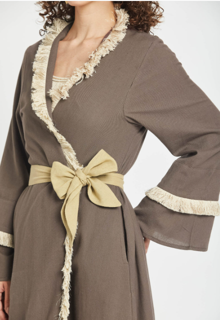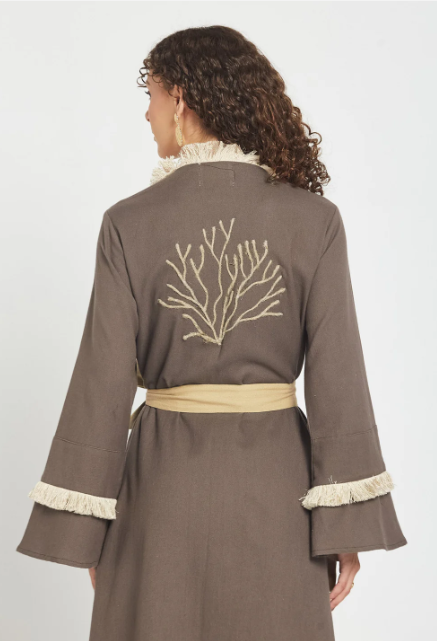 Deslize para uma elegância descomplicada com o nosso Kimono Dust Mocha, onde o algodão macio se encontra com o charme artesanal. Esta peça leve apresenta delicados bordados em ráfia que acrescentam textura e interesse visual a qualquer look. Perfeito para usar por cima de peças básicas ou sozinho, é a sua peça ideal para um look sofisticado e descontraído com um toque divertido. Usufrua do conforto sem abdicar do estilo.