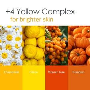 – 4 Yellow Complex – Infusão de Camomila, Yuzu, Espinheiro-Marítimo e Abóbora para revitalizar e iluminar a pele delicada ao redor dos olhos.