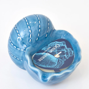 Categories:Decoração, Velas Tags:cerâmica azul marinho concha decorativa decoração náutica de luxo presente criativo. Vela concha caracol