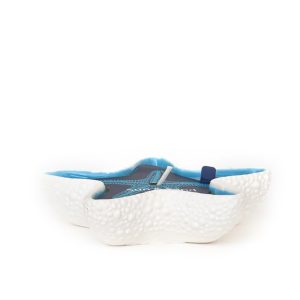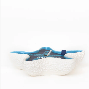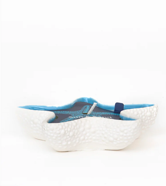 Design Orgânico e Sofisticado: Com uma textura detalhada que imita a pele de uma estrela-do-mar real, o exterior em branco mate contrasta perfeitamente com o interior num azul vibrante, evocando as águas cristalinas do mar.