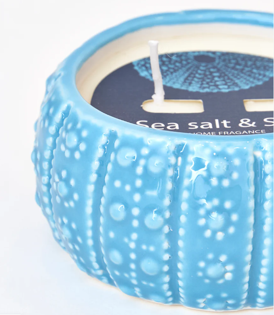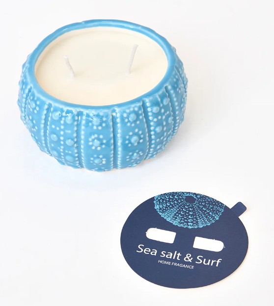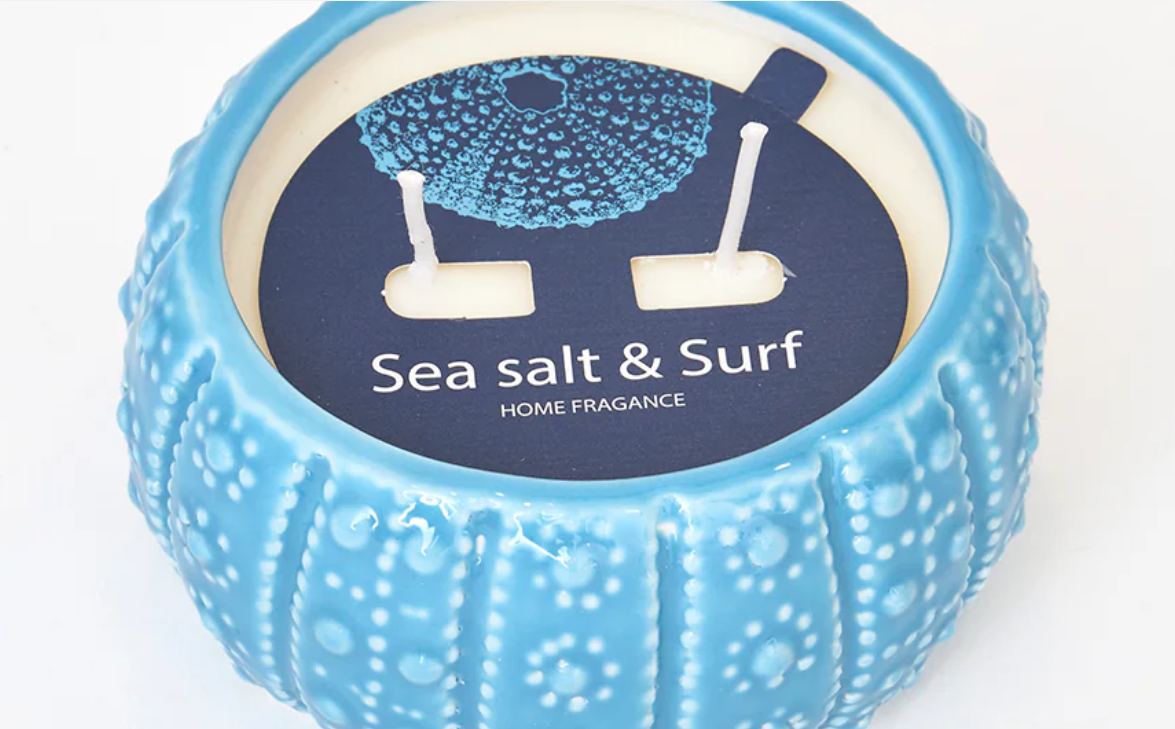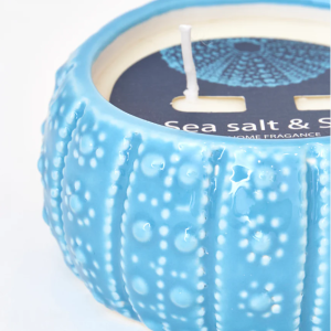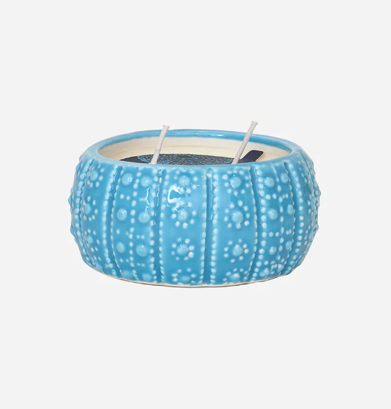 Design: O design reproduz fielmente os padrões simétricos de um ouriço-do-mar, com pequenas protuberâncias que criam um jogo de luz e sombra fascinante quando a vela está acesa.